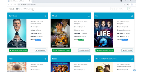 Online platform for reserving theatre, cinema, and concert tickets. On this website, you can easily purchase tickets by first selecting event details, choosing your preferred seats, and completing the payment process.