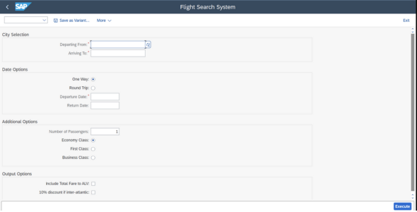 An ABAP-based system to query flight details from a SAP system, showing airline names, times, seats, and prices.